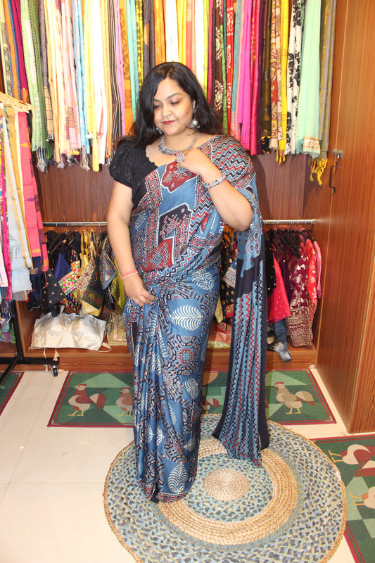 Sold outAjrakh Modal Silk Saree Blue Indigo