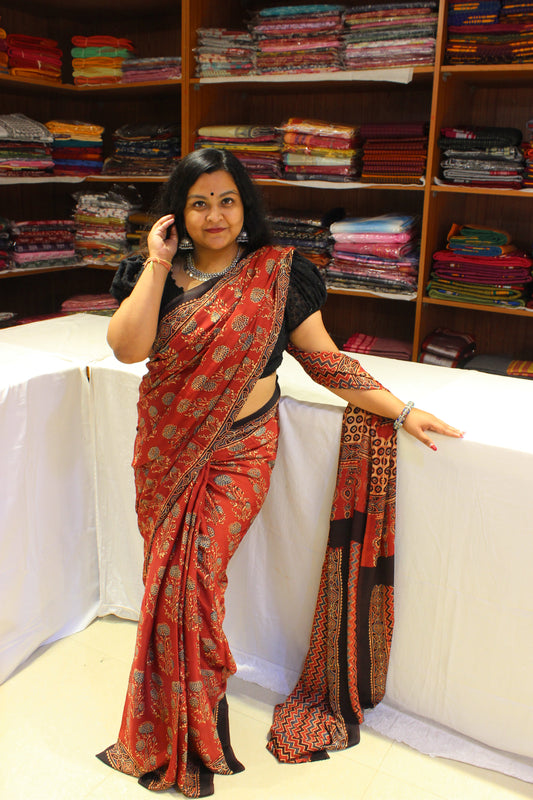 Elegance Redefined: Ajrakh Modal Sarees Ajrakh Modal Sarees blend the rich tradition...