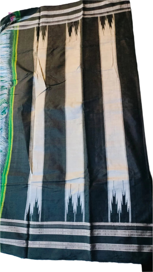 Handloom ILKAL SAREE GREY - Black Resham Pallu