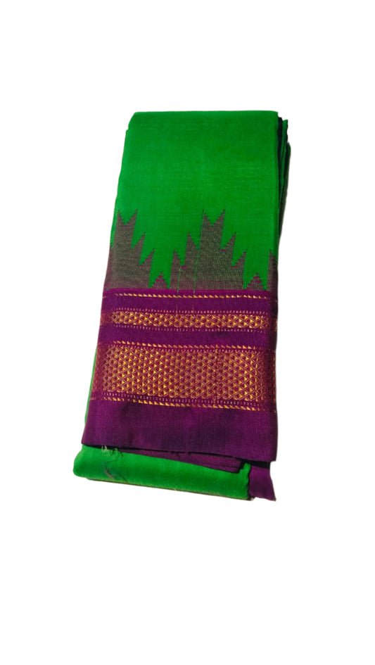 Ilkal Cotton Silk Saree with Temple Border Green with Purple shade | Gruhini Silks