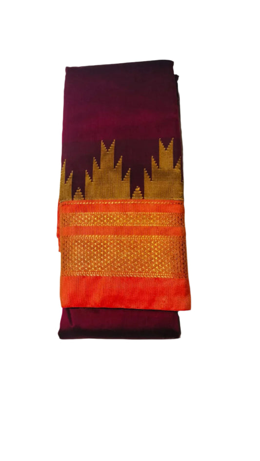 Ilkal Cotton Silk Saree with Temple Border Maroon with Orange | Gruhini Silks