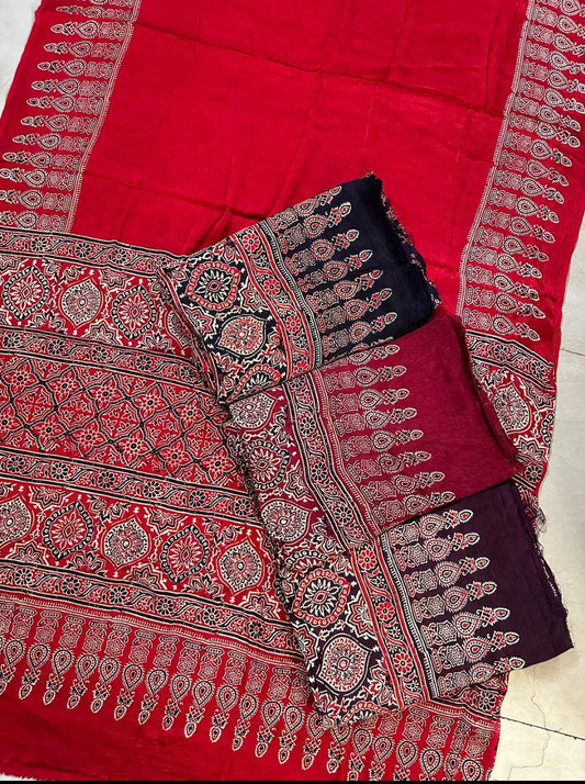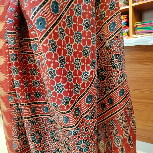 Ajrakh Modal Dola Silk Red