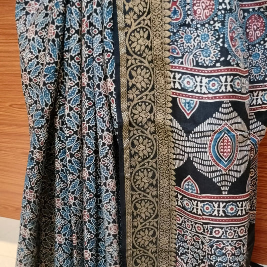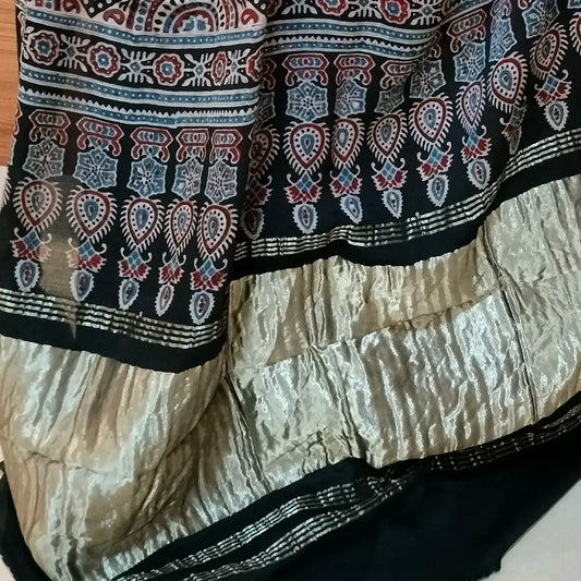 Ajrakh Modal Tissue Silk Blue with black
