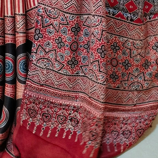 Ajrakh Modal Silk Saree Maroon Colour