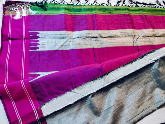 Ilkal Plain Border Satin Silk Grey with Majenta