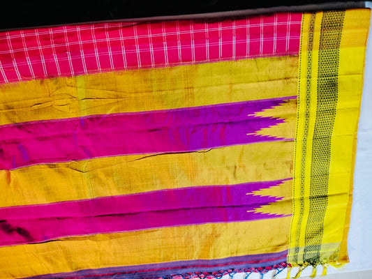 Ilkal Pure Cotton Saree Yellow with Majenta