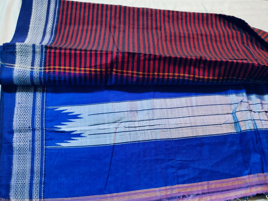 Ilkal Pure Cotton Saree Red with yellow