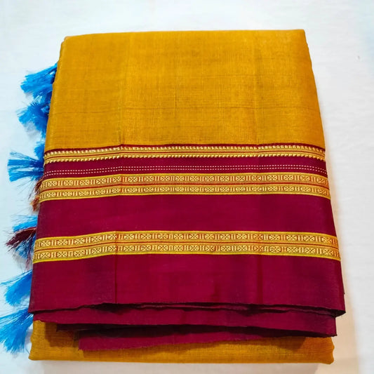 ILKAL SATIN COTTON SILK MUSTARD WITH MAROON