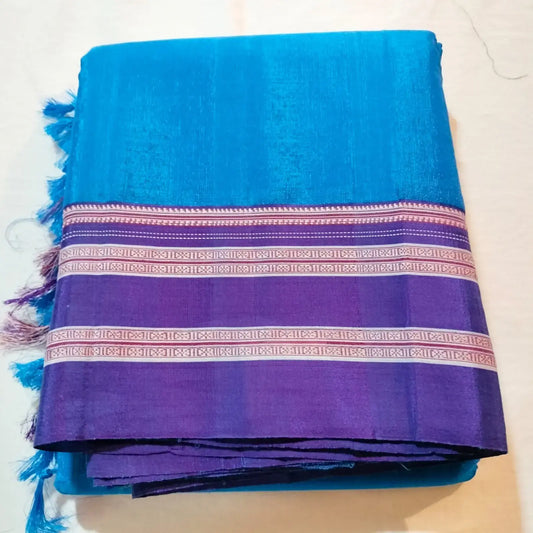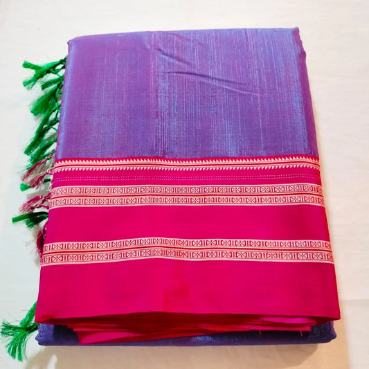 ILKAL SATIN COTTON SILK BLUE DOUBLE SHADE WITH MAJENTA