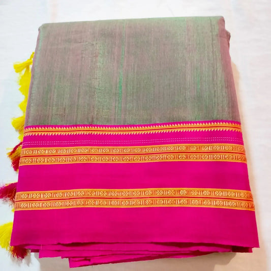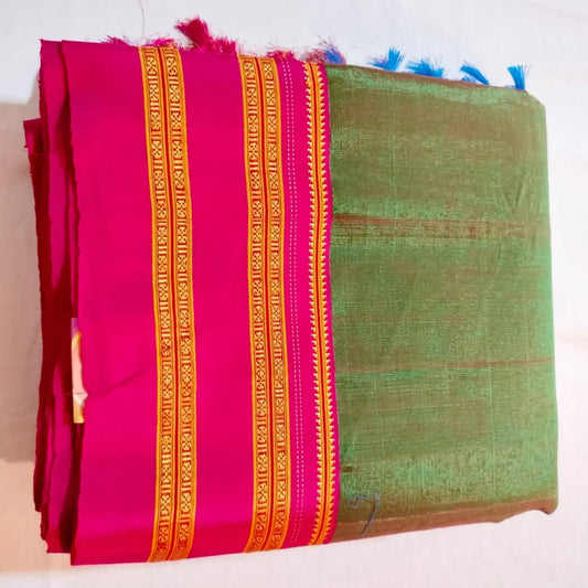 ILKAL SATIN COTTON SILK GREEN WITH MAJENTA