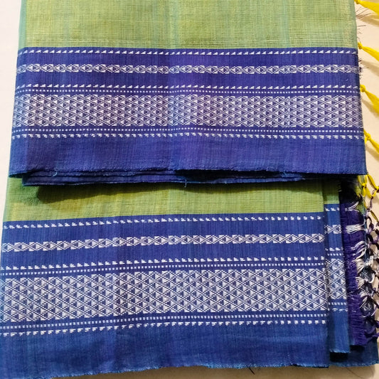ILKAL SATIN COTTON SILK GREEN WITH BLUE