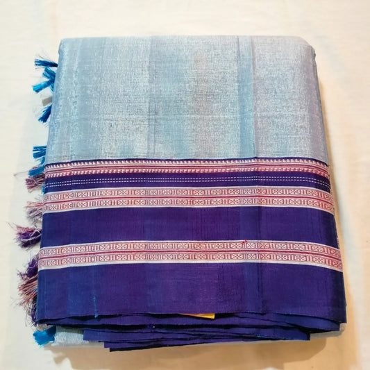 ILKAL COTTON SATIN SILK SKYBLUE WITH DARK BLUE