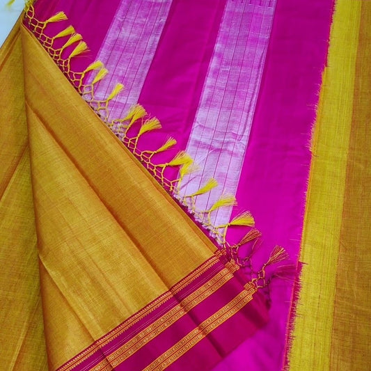 Gayathri Ilkal Satin Silk Yellow With Majenta