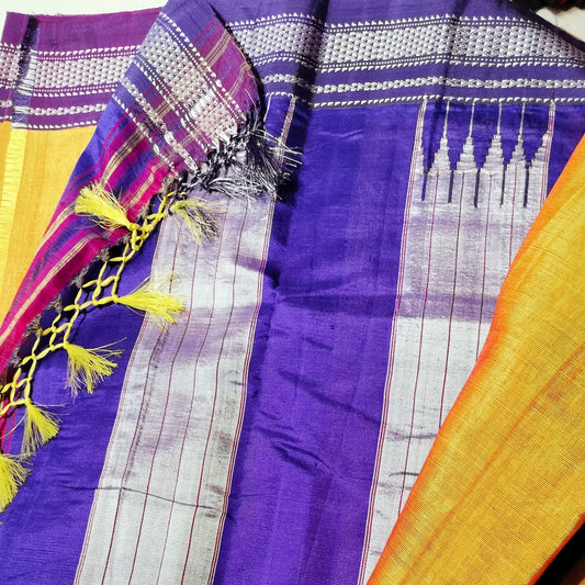 Sold outIlkal Satin Silk Yellow with purple