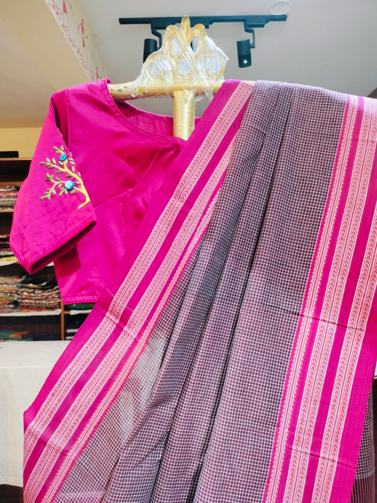 Anchu Patteda Gometini Saree Black Checks with Pink