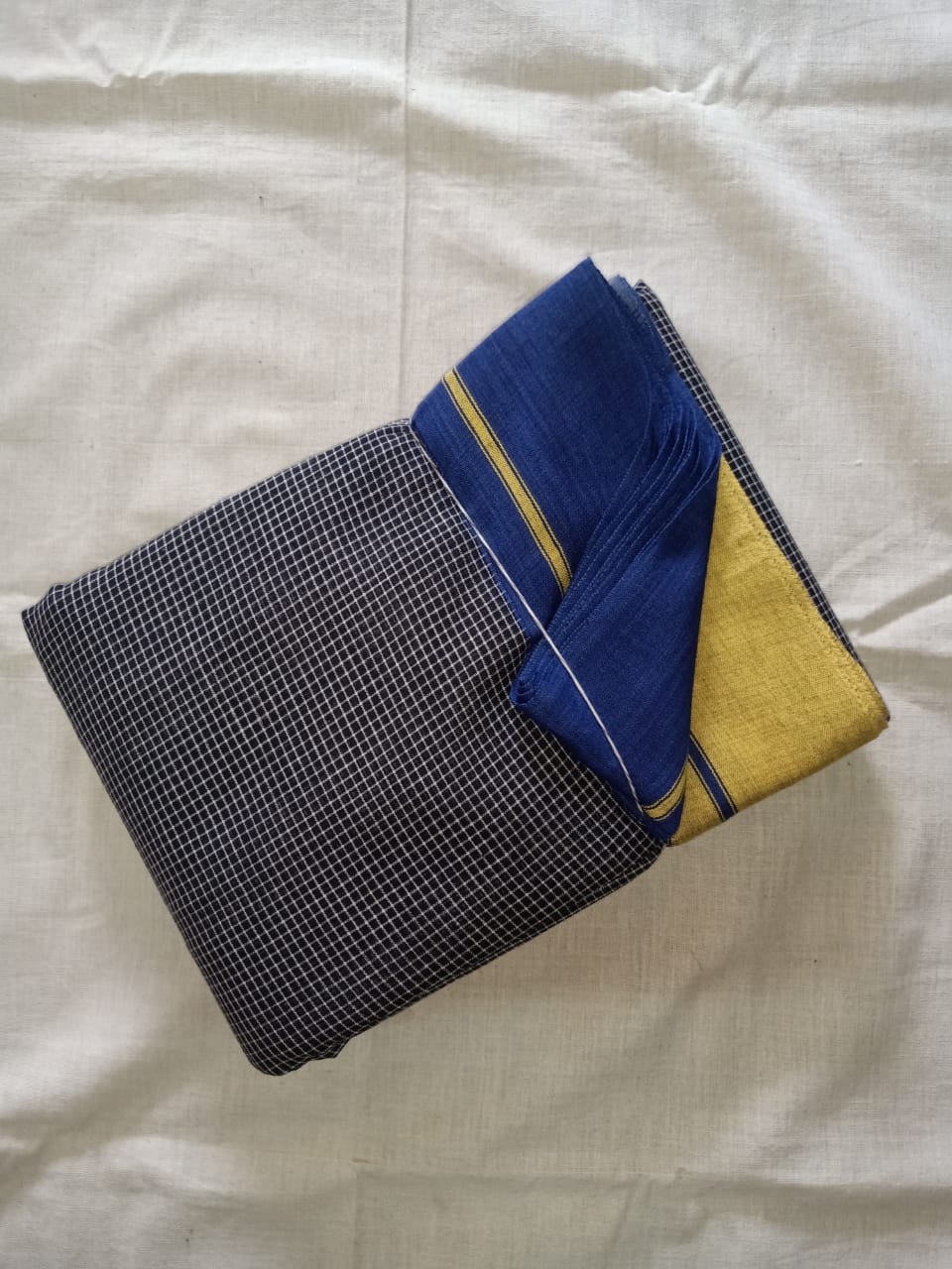 Anchu Patteda Black Body with Blue Yellow Ganga Jamuna Border